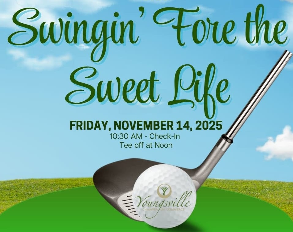 The Youngsville Chamber of Commerce proudly invites you to our 5th Annual Swingin’ Fore the Sweet Life Golf Tournament, a fun-filled day on the greens!